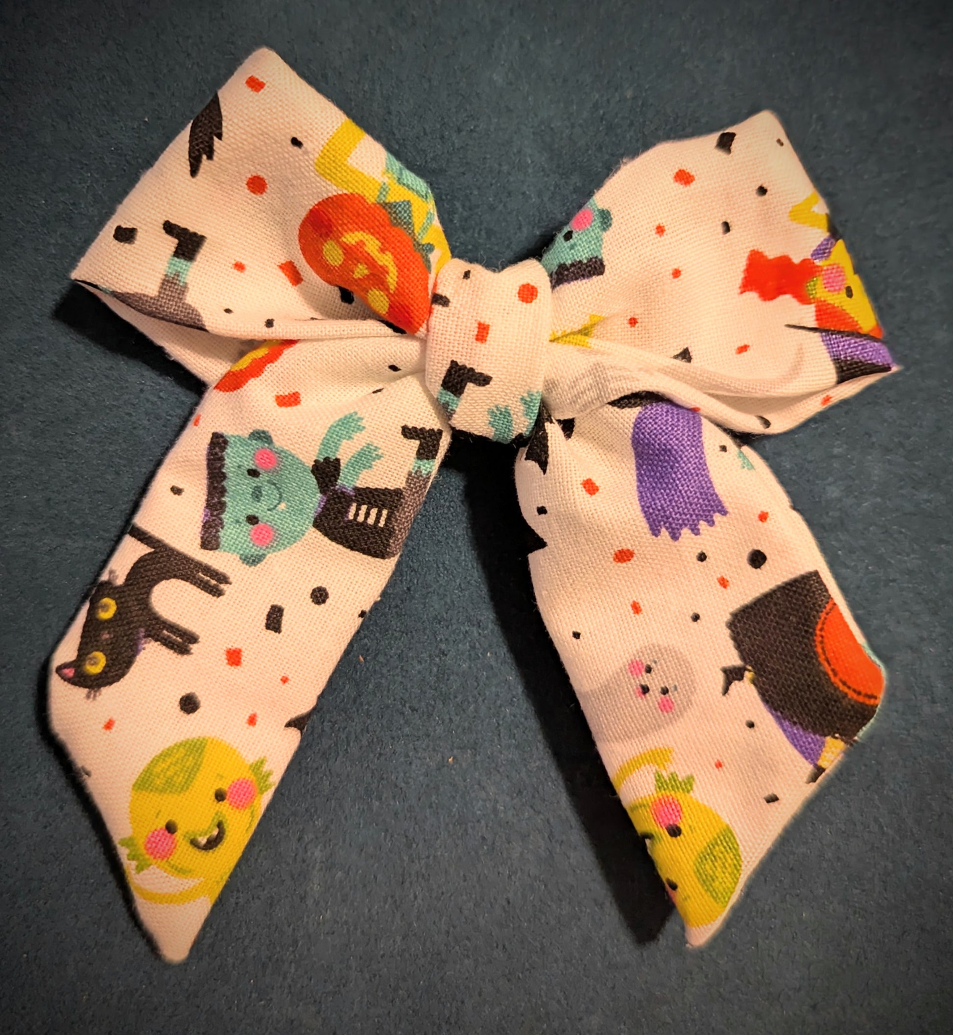 Add some monster flair to your look with our Monster Mash Bow-small! Made from small monster print fabric, this bow is perfect for adding a playful touch to your outfit. This bow is a must-have for all your little monsters (and big ones too)!