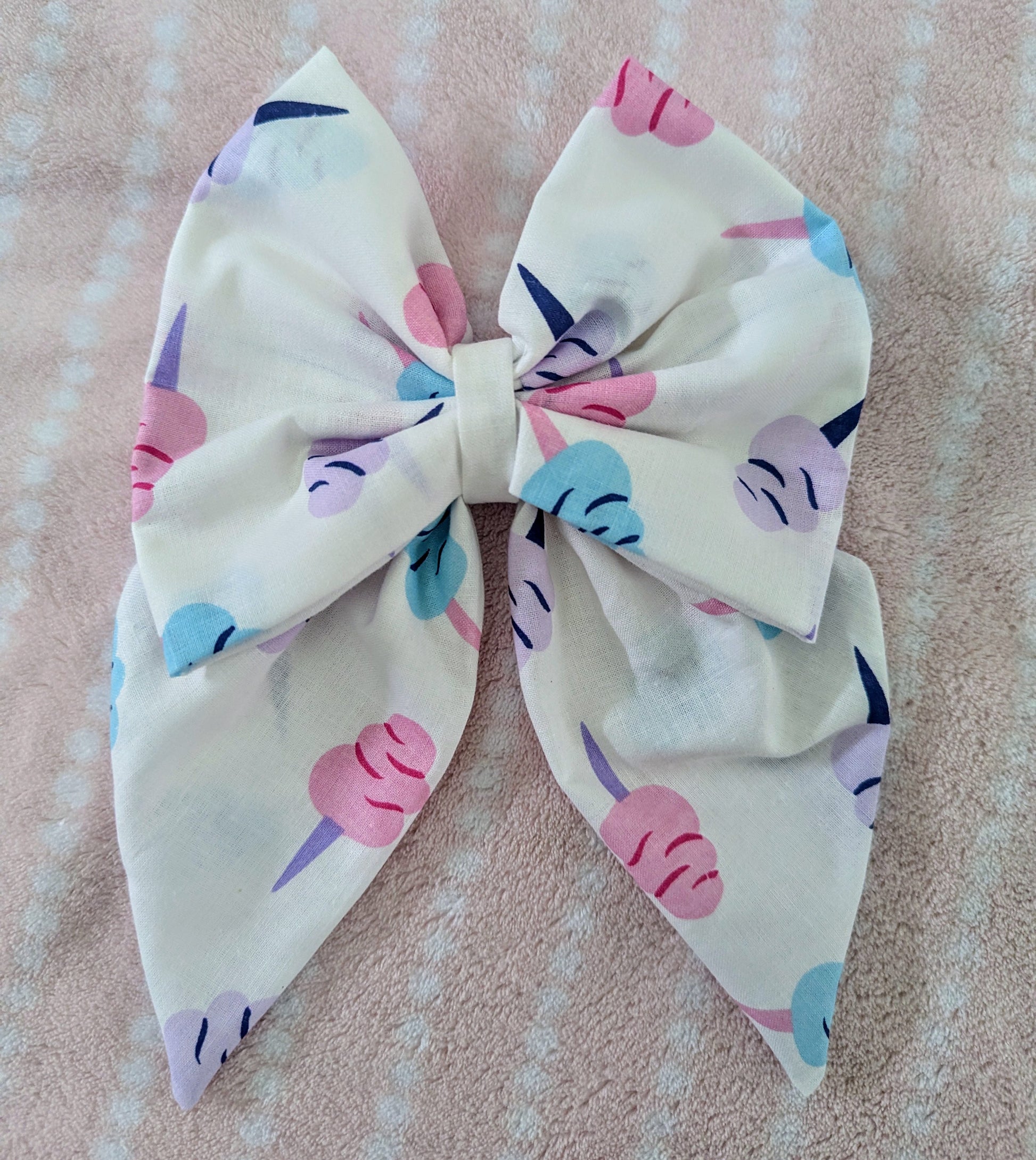 Get ready for some sweet style with our Cotton Candy Fun hair bow! Perfect for adding a playful pop to any outfit, this large bow features a fluffy cotton candy design. Add some fun and flavor to your look with our cotton candy hair bow!